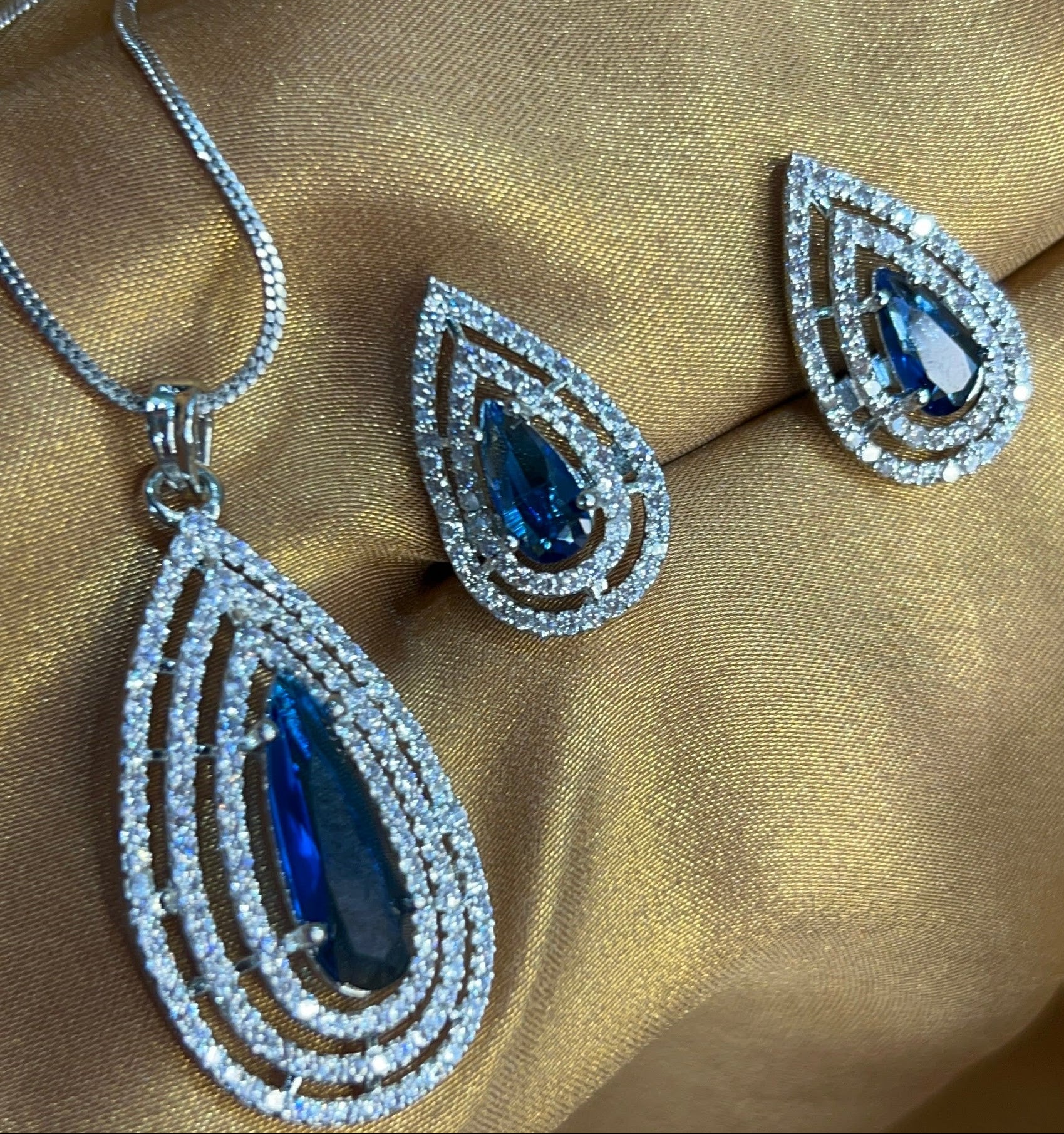 crystal necklace set, elegant necklace set, multicolor crystal necklace, royal blue necklace set, party wear necklace set, wedding jewelry set, festive necklace earrings set, drop necklace set, fashion jewelry set