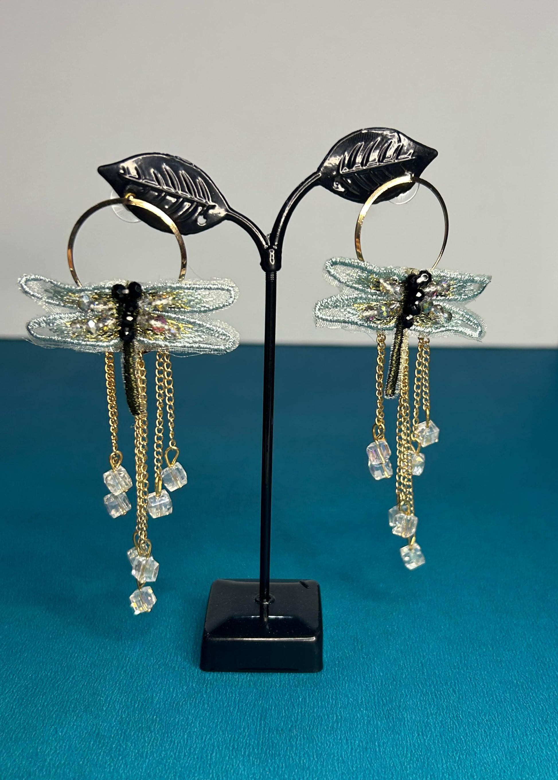 Add a whimsical yet elegant charm to your look with these Dragonfly Crystal Chain Drop Earrings. Designed with delicate dragonfly motifs accented by shimmering details, these earrings feature graceful gold-tone chains finished with sparkling crystal drops. Available in a beautiful Yellow & Blue color combination, they reflect light effortlessly for a dreamy, statement finish.